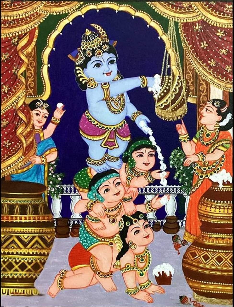Tanjore painting is a traditional art form originating in the region of Tanjore. This art form dates back to the 1600 AD during the rule of the Nayaks. The temples built by the Chola rulers had a large number of murals paintings depicting various scenes from the Indian Mythology.